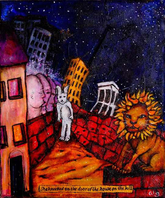 She knocked on the door of the house on the hill.