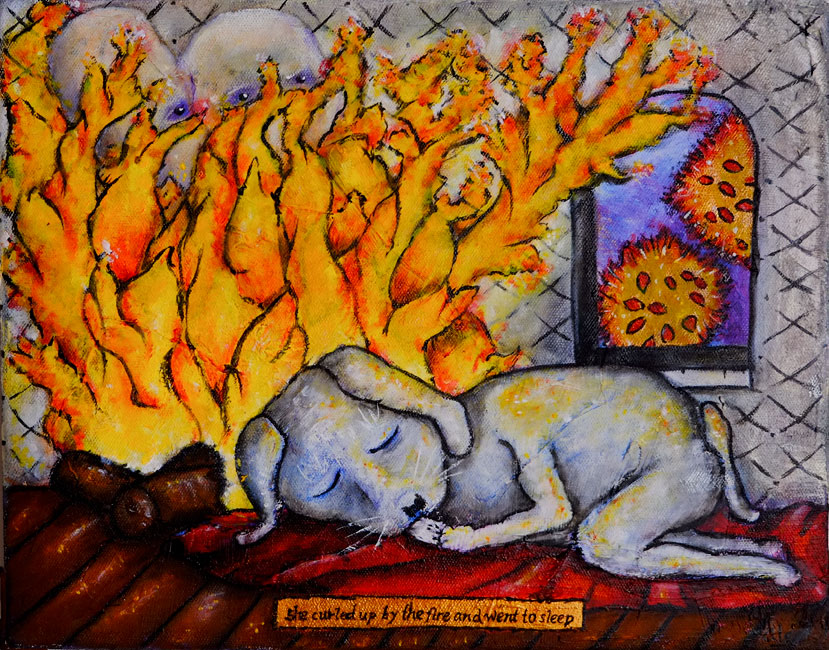 She curled up by the fire and went to sleep