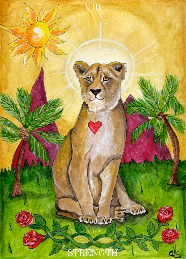 VIII Strength Alternate Version 2watercolor and ink on paper10 x 142024